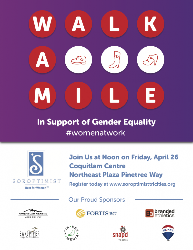 The Soroptimists invite men, women and youth to come out during their lunch hour and walk a mile together and #starttheconversation around ending gender inequality in the Tri-Cities. Each registrant will receive a pair of event socks upon check-in. Registration is $20 per person plus processing fee.